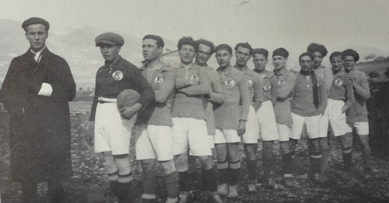La crescente diffusione del calcio a Fabriano si concretizza nella costruzione, in questi primi anni Venti, di un vero campo da gioco: è quello ancora esistente e che dà il nome a Via Campo Sportivo e all’intero quartiere, oggi comunemente chiamato “Stadio Vecchio”. Se ci fate caso, sul cancello di ingresso - che è quello originale - si leggono le sigle in ferro battuto “SC” sul lato sinistro e “SE” sul lato destro, stanno per “Società Cattolica Sportiva Excelsior”, ovvero la squadra che lo costruì e ci giocò per prima.