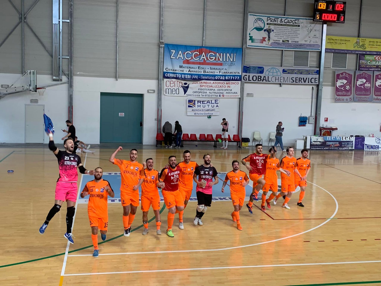 CERRETO D’ESI - Quarta vittoria consecutiva, la settima nelle ultime otto partite, per l’Apd Cerreto d’Esi che continua a macinare punti su punti e si mantiene in testa alla classifica di serie C1 di calcio a 5 a quota 36 insieme al Cus Macerata (che deve recuperare una partita). Nell’ultimo turno, giocato oggi pomeriggio (sabato 19 febbraio), i ragazzi di mister Paolo Amadei hanno superato per 8-2 la Nuova Juventina. La formazione cerretese: Tomassini Roberto (1 gol), Di Ronza Simone (1 gol), Neitsh Gustavo, Marturano Walter Alejandro (2 gol), Graziano Luigi, Occhiuzzo Jose Jeremiah (3 gol), Caporali Samuele, Largoni Cristian, Stazi Gianmarco (1 gol), Casoli Davide, Lo Muzio Pasquale, Mosciatti Matteo. Sabato 26 febbraio l’Apd giocherà ancora in casa e sarà big-match con la Dinamis Falconara, che segue in classifica di appena due punti: calcio d’inizio alle ore 15 al palazzetto di Cerreto d'Esi.