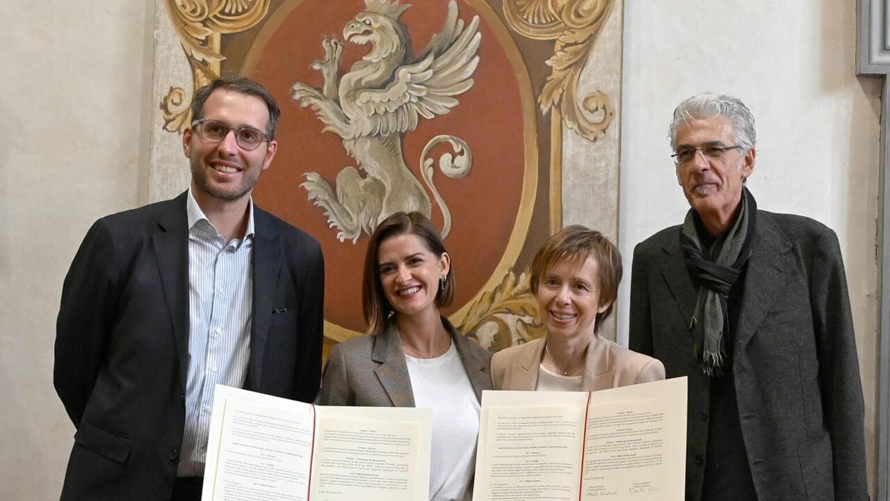 Perugia e Fabriano collaborano per valorizzare l’offerta turistica e i rispettivi ambiti territoriali ricchi di peculiarità ed eccellenze storiche, culturali, paesaggistiche e ambientali. L’alleanza tra le due città è stata formalizzata ieri nella Sala Rossa del Palazzo dei Priori del capoluogo umbro, con la firma di un protocollo d’intesa da parte del sindaco perugino Vittoria Ferdinandi e di quello di Fabriano Daniela Ghergo. Erano presenti anche l’assessore al Turismo di Perugia Fabrizio Croce e l’assessore al Turismo e alle Politiche giovanili di Fabriano Andrea Giombi. A dare il via all’iter che ha portato all’accordo è stata la delibera del 2019 con cui il Consiglio comunale di Perugia aveva espresso la volontà di realizzare iniziative comuni per veicolare il patrimonio dei due territori, prevedendo una sorta di gemellaggio tra la Fontana Maggiore di Perugia e la Fontana Sturinalto di Fabriano, simboli di due città e dei loro popoli. Nel marzo 2023 a Fabriano e nel maggio 2024 a Perugia si sono svolti i primi eventi per consolidare il rapporto di amicizia. Il progetto prevede di sviluppare un processo di conoscenza delle identità locali, di incentivare l’organizzazione di eventi, di facilitare la fruizione e l’accessibilità ai rispettivi sistemi museali mediante agevolazioni finalizzate a favorire l’interscambio di visitatori. Quindi di favorire, attraverso i canali di comunicazione istituzionali, manifestazioni di rilevante interesse per accrescere l’attrattività dei territori.