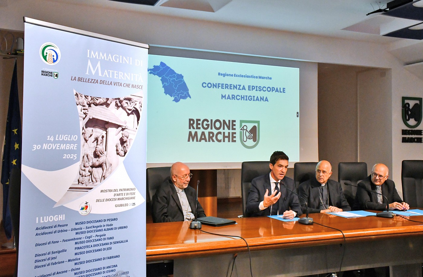Si è tenuta lunedì 21 luglio nella sede regionale la conferenza stampa di presentazione ufficiale del progetto “Pellegrini di Speranza”, promosso dalla Conferenza Episcopale Marchigiana (CEM) e realizzato in collaborazione con la Regione Marche in occasione del Giubileo 2025. Sono intervenuti il presidente Regione Marche Francesco Acquaroli, Mons. Nazzareno Marconi, presidente Conferenza Episcopale Marchigiana (CEM) e vescovo di Macerata, Mons. Francesco Massara, vescovo delegato dalla CEM per i Beni Culturali e arcivescovo delle Diocesi di Camerino-S. Severino e Fabriano-Matelica, Mons. Angelo Spina, vescovo delegato della CEM per la Comunicazione e arcivescovo della diocesi di Ancona-Osimo. Un’iniziativa che si inserisce nel cammino giubilare voluto da Papa Francesco e che vede le Marche protagoniste di una proposta organica, condivisa e articolata, capace di valorizzare non solo i luoghi della fede, ma anche il grande patrimonio artistico, storico e culturale della Regione Ecclesiastica. Il progetto si articola in tre grandi linee di intervento che accompagnerà fedeli, turisti e pellegrini per tutto l’anno giubilare in un viaggio di fede e speranza attraverso arte, cammini e spiritualità. Il progetto di rete voluto dai Vescovi delle Marche e denominato “Pellegrini di Speranza” è rivolto a tutti: fedeli, studenti, famiglie, visitatori e amanti dell’arte. È anche un invito a scoprire le Marche con uno sguardo nuovo, come terra di accoglienza, spiritualità e bellezza. Una bella occasione per vivere il Giubileo attraversando musei, santuari, cammini e comunità, in un percorso di fede e cultura che proseguirà oltre il 2025. Cuore pulsante dell’iniziativa è la Mostra diffusa “Immagini di maternità. La bellezza della vita che nasce”. Dal 14 luglio e fino al 30 novembre 2025, 14 musei diocesani delle Marche ospitano una mostra tematica dedicata alla maternità, con opere che raccontano la vita e la speranza attraverso i secoli. Ogni sede allestisce una sala con immagine coordinata, costruendo un grande museo diffuso a livello regionale. Il calendario delle aperture prevede, dopo Urbino del 14 luglio, tra le date principali: 15 luglio a San Severino Marche; 17 luglio a Comunanza; 23 luglio a Pesaro; 24 luglio a Fano e Fermo; 25 luglio a Fabriano; 26 luglio lancio a Ancona e Osimo; 28 luglio a Macerata; 31 luglio a Senigallia; 11 agosto ad Ascoli Piceno; 14 agosto a Loreto e 30 agosto a Jesi. Questa mostra rappresenta un esperimento culturale inedito a livello nazionale, con un forte messaggio simbolico e sociale, e coinvolge musei che in alcuni casi ospitano opere provenienti da chiese danneggiate dal sisma.