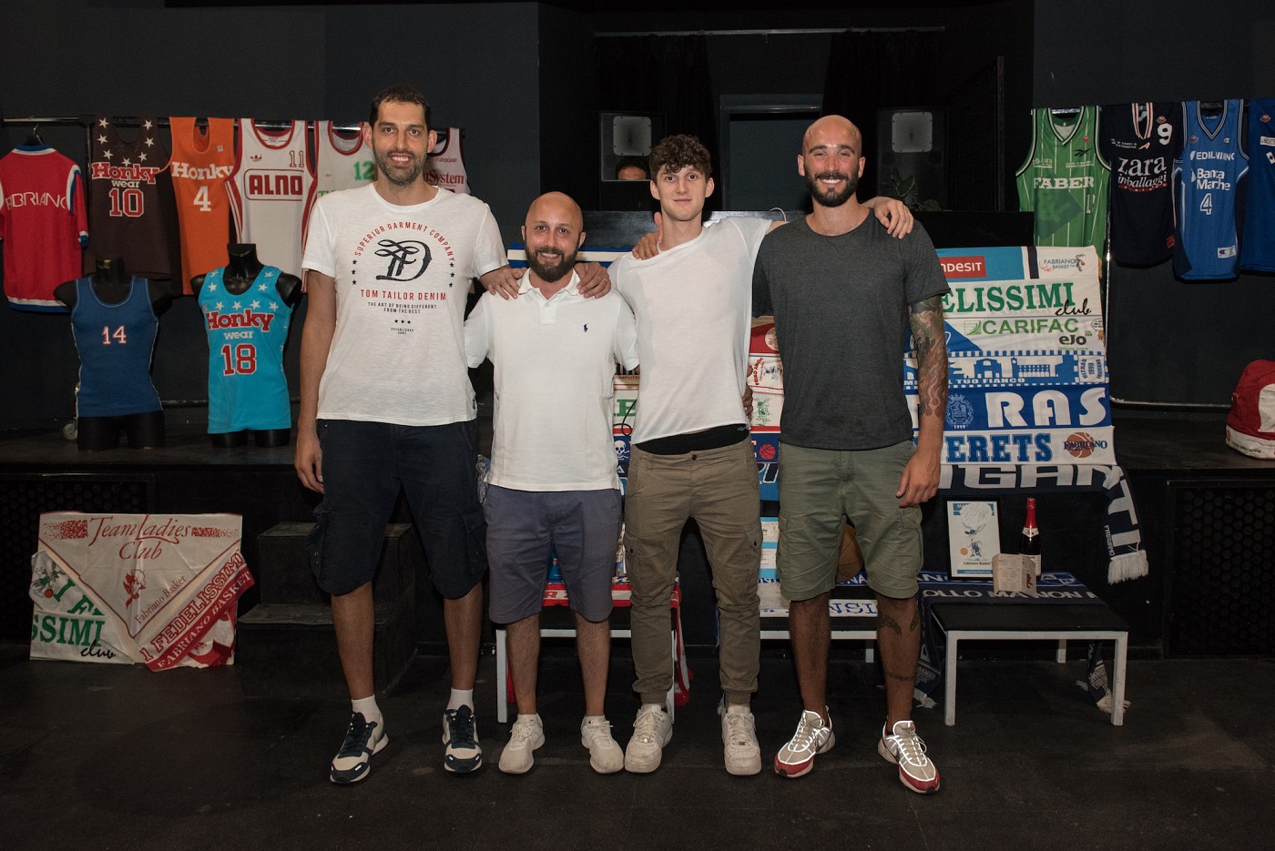 Luca Garri, coach Lorenzo Pansa, Francesco Paolin e Francesco Fratto in visita alla mostra "Fabriano & il Basket" (foto di Marco Teatini)