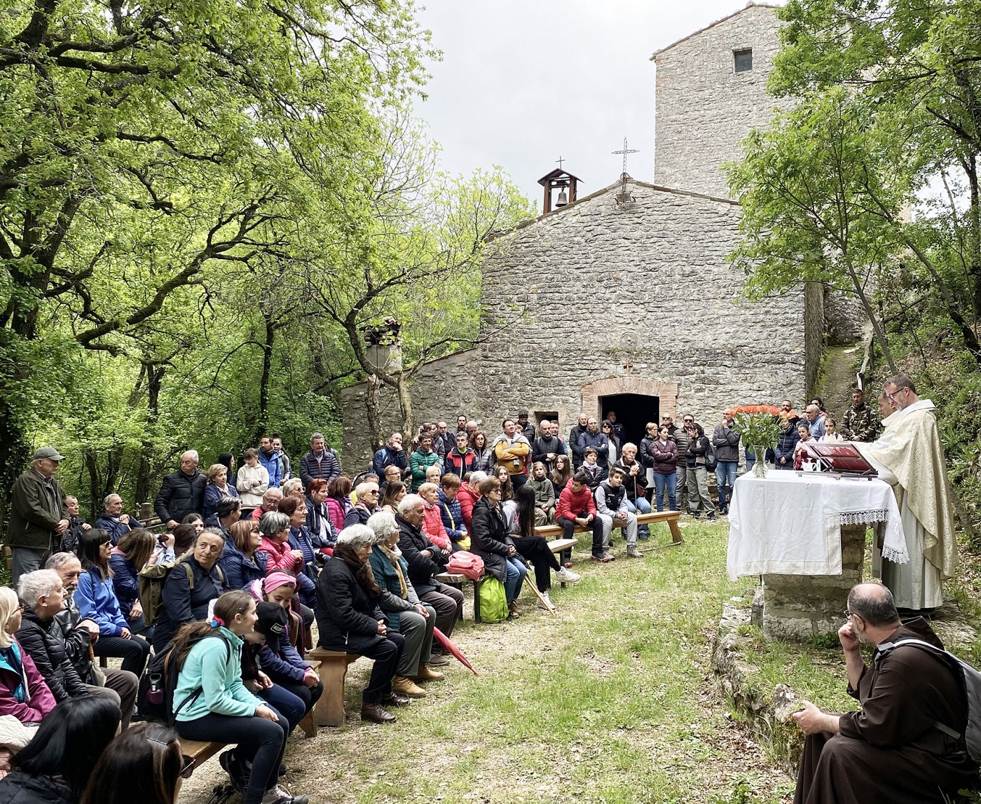 Nonostante il tempo incerto, oltre 150 persone hanno partecipato alla festa della Madonna dell’Acquarella. Massiccia anche la partecipazione dei frati cappuccini e dei loro amici che hanno in questo luogo la loro culla, capitanati dal ministro provinciale padre Sergio Lorenzini. Quest’anno sono stati ricordati in occasione dell’ottantesimo anniversario della loro tragica scomparsa i fratelli Agapito e Torello Latini originari di Albacina. Molto significativo è stato l’intervento di Romualdo Latini, presente sia il giorno precedente che quello della festa, rimasto orfano in tenerissima età del padre Torello. Molti sono stati coloro che, secondo la migliore tradizione, sono venuti a piedi da Albacina; mentre non sono mancati anche molti ultraottuagenari che comunque si sono avvalsi del servizio navetta della Protezione Civile di Fabriano. I prossimi sabati fino a ferragosto verranno celebrate alle ore 11 Sante Messe in un luogo che ogni fabrianese dovrebbe conoscere.