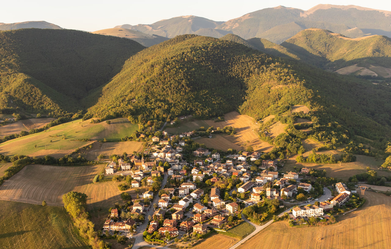 Il paese di Marischio e, alle sue spalle, la pineta dove si svolgerà la passeggiata (foto di Graziano Tozzi)