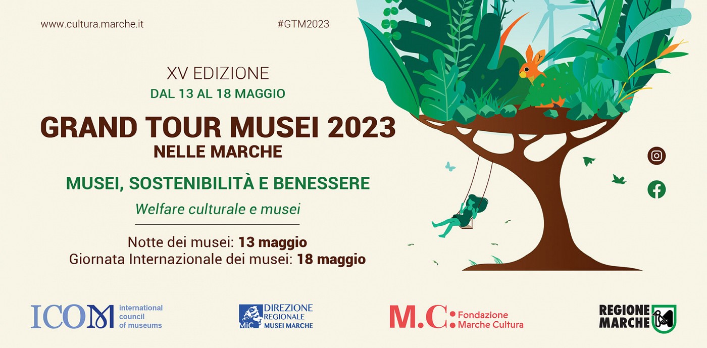 Anche questa XV edizione di Grand Tour Musei, in programma da sabato 13 maggio Notte dei musei, a giovedì 18 maggio Giornata Internazionale dei musei, vede una nutrita partecipazione di musei della nostra regione, le cui sedi ospiteranno iniziative di ogni genere che coinvolgeranno il pubblico e offriranno opportunità di sviluppo ai territori di riferimento. Promosso dall’assessorato alla Cultura della Regione Marche e dalla Fondazione Marche Cultura, in collaborazione con il MiC –Ministero della Cultura Direzione Regionale Musei Marche e il Coordinamento Regionale Marche di Icom Italia, il Grand Tour Musei vuole essere un viaggio alla scoperta del patrimonio storico culturale conservato nei nostri istituti. Si tratterà di un’occasione per riflettere su come i musei possano svolgere una funzione di sostegno allo sviluppo sostenibile delle nostre comunità, dal punto di vista umano, sociale, economico e ambientale. A questa tematica di grande attualità i musei possono rispondere proponendosi come luoghi di promozione del benessere collettivo, in cui rilassarsi e incontrare nuove persone, contribuendo al contempo a promuovere la biodiversità con attività didattiche e di ricerca e a contrastare il cambiamento climatico invitando a riflettere su quanto sia importante conciliare lo sviluppo delle attività produttive con la tutela dell’ambiente. Consultabile al link www.regione.marche.it/GrandTourMusei2023 e all’hashtag #GTM2023, il ricco calendario degli eventi ci consentirà di scegliere la proposta più gradita, selezionando il comune, la data o il tipo di iniziativa. L’offerta culturale promossa dai 110 luoghi della cultura aderenti all’iniziativa e distribuiti in 53 comuni delle 5 province, prevede la realizzazione di oltre 115 eventi, tra cui eventi al buio e visite a lume di candela, concerti e danze, divertenti e avventurose ‘escape room’ per aspiranti detective, percorsi di orienteering archeologici, giochi didattici, iniziative varie destinate a riflettere su temi quali la biodiversità e la sostenibilità, photo walk e mostre fotografiche, manipolazioni con l’argilla nei laboratori, manifestazioni in costumi storici, esercizi di yoga e pilates, ballate e canti della tradizione, passeggiate nei borghi. La tematica individuata da Icom in occasione della Giornata Internazionale dei musei, ‘Musei, Sostenibilità e Benessere’, secondo l’assessore alla Cultura Chiara Biondi: “rappresenta un’opportunità per sottolineare il ruolo dei musei come fattori e strumenti di cambiamento, contesti di formazione e sviluppo della società, crocevia di visioni, suggestioni e interpretazioni. Individuando nuove modalità di fruizione e inedite occasioni di scambio culturale, il museo potrà dunque proporsi come uno spazio di crescita e di cambiamento, in continuo dialogo col proprio pubblico, in cui rigenerarsi e ‘reinventarsi’”. Sostiene inoltre Andrea Agostini, presidente di Fondazione Marche Cultura, “la Notte dei musei del 13 e la Giornata internazionale dei musei del 18 maggio avvicinano idealmente tutta l’Europa. Le Marche rispondono rinnovando l’appuntamento con il Grand Tour, che ci invita quest’anno a riflettere sul legame tra le strutture museali ed i temi della sostenibilità e del benessere. È uno spunto stimolante: i musei, come i luoghi della cultura in genere, sono spazi in continua evoluzione, opportunità di incontro; sono chiamati a dialogare col mondo ed a sperimentare nuovi linguaggi. È ormai evidente quanto possa essere forte il legame tra musei, sostenibilità ambientale, lotta ai cambiamenti climatici. La bellezza educa. Educa allo spirito critico, abitua a sentirci parte di una comunità. Lo diceva anche Peppino Impastato: ‘se si insegnasse la bellezza alla gente, non si insinuerebbero più l’abitudine e la rassegnazione, rimarrebbero sempre vivi curiosità e stupore’”.