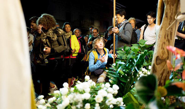 Il Pellegrinaggio incontra ogni anno l’interesse di tanti giovani proprio perché non elude queste domande e propone un’esperienza all’altezza del vuoto esistenziale che caratterizza la nostra società. Anche in questa 40° edizione e nel ricordo della straordinaria figura di San Giovanni Paolo II che 25 anni fa partecipò al Pellegrinaggio, non mancherà la presenza di Papa Francesco che ha assicurato il suo saluto via telefono prima della partenza. Anche da Fabriano e da altre parti della Diocesi partiranno pullman per raggiungere Macerata nella serata di sabato 9 giugno e come ogni anno si terrà un incontro di preparazione nella giornata di mercoledì 6 giugno alle ore 21, presso la chiesa della Misericordia a Fabriano. Nella stessa mattinata del 6 don Giancarlo sarà a Roma per la benedizione della fiaccola della pace dal Papa in piazza S. Pietro, accompagnato da tedofori e podisti che proseguiranno poi il percorso, per raggiungere lo stadio di Macerata, tre giorni dopo, il 9 giugno prima della partenza verso Loreto. Intanto è uscito questa settimana sulla rivista “Credere” un bel reportage sul Pellegrinaggio con un’intervista al fondatore del cammino, don Giancarlo Vecerrica, Vescovo emerito di questa Diocesi. Lo stesso don Giancarlo è stato contattato dai giornalisti di Rai Uno per una breve intervista nella trasmissione “A sua immagine” che andrà in onda domenica 3 giugno nella mattinata, prima della celebrazione della S. Messa prevista. Nel frattempo è anche uscito un libro, in questi giorni, a firma di Andrea Tornielli e Domenico Agasso jr. dal titolo “A piedi nella notte” (ed. Piemme) che ripercorre con lo stile narrativo, con racconti e testimonianze, i 40 anni di storia del cammino verso la Santa Casa.