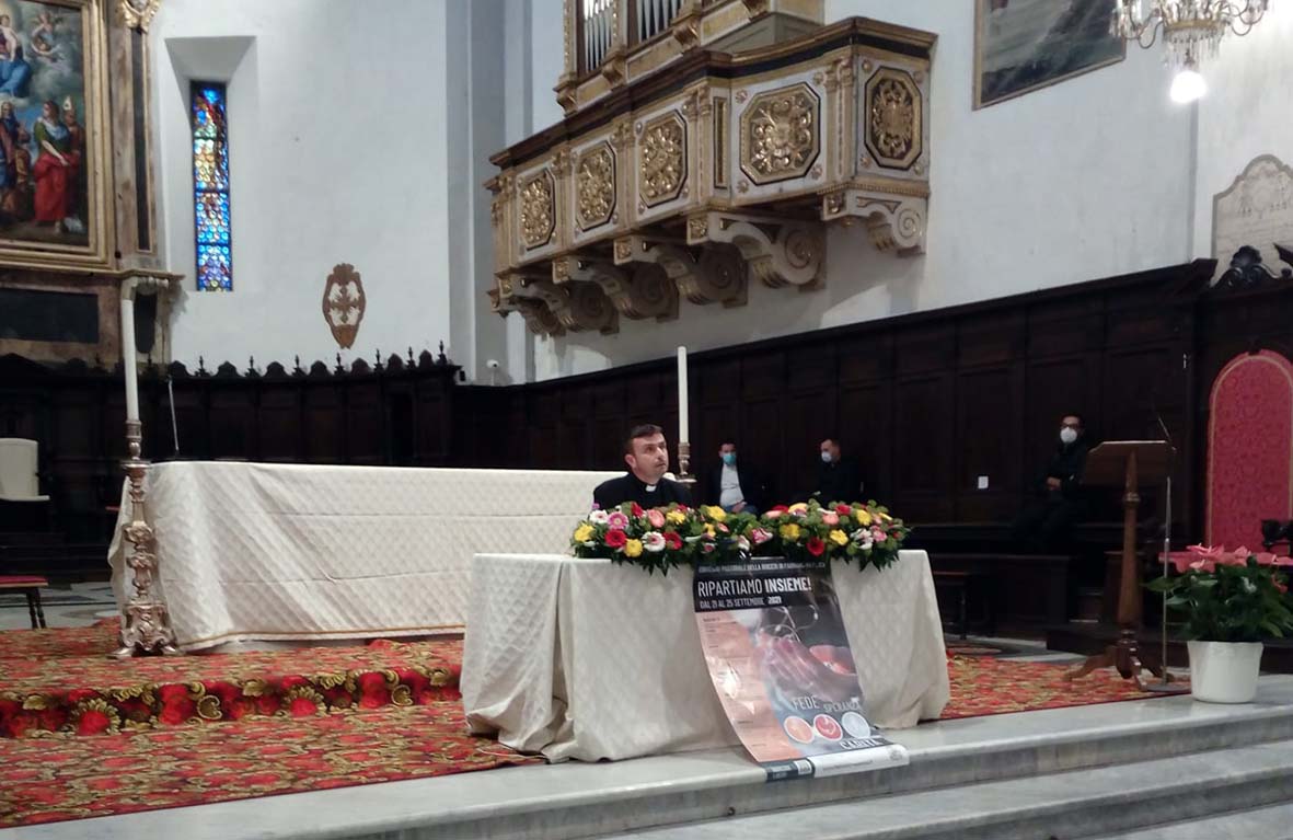 E’ appena iniziato, ieri sera alle 18 in Cattedrale, il Convegno pastorale diocesano con il primo incontro sul tema della speranza con don Luigi Maria Epicoco, assistente ecclesiastico del Dicastero Vaticano per la Comunicazione. E proprio sulla speranza e sulla ripresa l’ospite ha insistito con molta efficacia, seguendo la scelta voluta dal Vescovo Francesco Massara di riprendere un cammino insieme dopo il duro lockdown. “La crisi diventa per ciascuno di noi un’opportunità, perché umanizza il nostro io, ci fa toccare con mano la fragilità che abbiamo e soprattutto nella consapevolezza che da soli non ci si salva”. Don Luigi ha sottolineato il fatto che è cambiato anche il modo di vivere la Chiesa, “prima vissuta solo come attivismo, come Chiesa del fare, ma la crisi ci ha tolto tutto il fare… non sapevamo più rispondere al nostro essere”. Come uscirne allora? Nel suo intervento l’assistente ecclesiastico ha parlato di una vera rivoluzione: imparare di nuovo a pregare insieme, ripartire da qui, con perseveranza e concordia, perdonandoci ed accogliendoci. “A cambiarci la vita non è un nostro sforzo, ma un dono di Dio. Come la speranza. Non dobbiamo aspettarla, è un dono che abbiamo, va tirata fuori come una grazia sepolta. La speranza apre un orizzonte, indica una strada: non siamo soli davanti a quello che la circostanza ci chiede di vivere, ma dobbiamo sentirci popolo”. Con queste profonde indicazioni si è iniziato un cammino poi proseguito in serata con una veglia di preghiera davanti al sagrato della Cattedrale, tra canti e testimonianze. Ma la speranza va vissuta come opportunità concreta nella vita di tutti i giorni. Intanto le possibilità di condivisione e di lavoro comune non mancano: oggi e sabato 25 settembre verrà proposto l’iniziativa con più opzioni “Nella notte, la luce delle Chiese”, ovvero un percorso spirituale, artistico e turistico attraverso i tesori della nostra Diocesi: dal concerto in Cattedrale della corale S. Cecilia (ore 20.30 e 22.30) di 30 minuti con visita alle bellezze di S. Venanzio grazie al Gruppo Giovani Guide (dalle 17 alle 20.30 e dalle 21 alle 22.30) al percorso artistico alla chiesa di S. Onofrio e alla Scala Santa accompagnati dalle melodie di Mario Solinas (dalle 18 alle 23) con le associazioni FaberArtis e S. Francesco Festival, dal recital dei ragazzi di S. Nicolò “Un santo per amico” nella parrocchia di S. Nicolò (ore 21) al percorso in poesia e musica attraverso i versi di Dante e le vite della Beata Mattia e di S. Silvestro nella chiesa dei Ss. Biagio e Romualdo (ore 19) ed il concerto del coro della parrocchia di S. Teresa di Matelica (ore 21), dalla performance di danza sacra a cura della scuola di danza Anna Nikolova nella chiesa di S. Benedetto (ore 18.30 – 20 - 22) alla testimonianza in prima persona tra canto, musiche e balli dall’Africa all’Oratorio del Gonfalone (ore 19 – 22). Poi altri due momenti in Cattedrale giovedì 23 settembre sempre alle 18 su “Carità: un cammino sulla scoperta della missione di ogni battezzato” con l’Arcivescovo metropolita di Siena-Colle di Val d’Elsa-Montalcino Card. Paolo Lojudice e venerdì 24 settembre (ore 18 in Cattedrale) su “Fede: un cammino per comprendere la nostra umanità” con il sotto-segretario aggiunto della Congregazione per la Dottrina della Fede don Armando Matteo. Vengono messe a tema le tre virtù teologali, fede, speranza e carità. Perché, come ci ha ricordato il primo relatore, “sono teologali in quanto non rappresentano un nostro sforzo, bensì un dono ricevuto e che dobbiamo tirar fuori e custodire”. A cominciare da adesso.