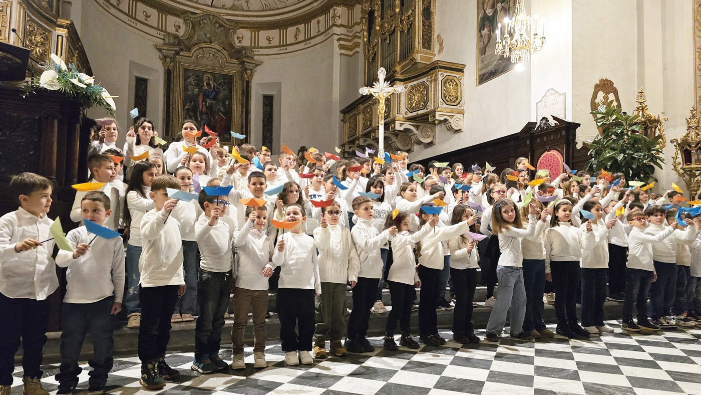 Che futuro stiamo consegnando ai nostri figli? Se i bambini ne avessero il potere, con quali colori dipingerebbero il mondo? Di quali doni abbiamo davvero bisogno per illuminare e scaldare il Natale? Sono questi gli interrogativi che hanno aperto l’evento “Note di pace, voci di speranza” presentato dalla Scuola Primaria Marco Mancini in Cattedrale il 15 dicembre, in occasione della consegna delle Borse di studio. Uno spazio e un tempo creato per consentire agli alunni di prendere posizione e di palesare il loro sentire di fronte all’evidente fallimento dell’umanità a cui stiamo assistendo: la guerra! Il percorso di approfondimento e di analisi, strutturato a livelli differenti nelle diverse classi, ha consentito loro la maturazione della consapevolezza di una regressione della civiltà, del declino dei valori e dei diritti, del misconoscimento della vita. La Scuola ha deciso di non lasciare i ragazzi nel ruolo di “spettatori passivi”, ma di promuovere l’espansione di una coscienza in qualità di “costruttori di Pace”. I piccoli cittadini di oggi, proprio perché non vogliono desistere da un progetto di futuro, hanno così elevato le proprie voci, per inneggiare alla speranza e alla pacificazione. Una manifestazione dal forte impatto metaforico in cui le parole si sono intrecciate a simboli e note per tessere circuiti solidali, per consentire di scusarsi dalle brutture, per donare un respiro di speranza. Bisbigli e sussurri sono diventati così poesia, riflessione, ritmo ma anche grida capaci di disgregare i muri di odio, di squarciare i veli silenziosi dell’indifferenza. Quest’anno l’augurio di Natale del coro del plesso è stato solo il momento conclusivo di una parentesi in cui ogni parola, ogni gesto, ogni canto presentato è stato un monito ai potenti affinché depongano le armi e un invito rivolto a tutti per edificare un mondo più giusto in cui il seme della speranza possa far germogliare una pace rigogliosa e duratura. L’evento ha previsto anche l’esibizione delle classi più grandi con la tecnica ludico-musicale delle cup songs e la realizzazione di una pixel art vivente, sapientemente innestati nel tema scelto dal plesso come filo conduttore annuale. Immancabile il parallelismo con chi, anche vicino a noi, ogni giorno, combatte la propria guerra personale, contro un nemico a volte silenzioso e invisibile: i bambini malati. E se ai nostri figli è concesso di chiedere doni e di esprimere desideri è perché hanno già tutto ciò che è davvero necessario. I bambini colpiti da malattie ne hanno uno solo: quello di poter guarire. La Fondazione Mancini da anni si prodiga affinché questa aspettativa fiduciosa possa manifestarsi, si è attivata per trasformare il proprio dolore in nutrimento per la speranza altrui. Il presidente Gianfranco Mancini ha condiviso i tanti gesti solidali promossi per sostenere la ricerca e le famiglie dei bambini colpiti da malattie oncoematologiche. Ha poi consegnato le borse di studio a due alunne, Sofia Valentini e Flavia Grassi che, nel quinquennio di frequenza, sono risultate particolarmente meritevoli tanto per gli esiti conseguiti quanto per meriti comportamentali. Il dirigente scolastico dell’Istituto Comprensivo Moro-Carloni, il professore Giosuè Rosini e il sindaco di Fabriano, Daniela Ghergo, hanno letto le motivazioni presentate dalle insegnanti Pazzaglia, Vitali e Stazio, che hanno accompagnato le ragazze al successo formativo. Si sono poi complimentati, insieme all’assessore Maurizio Serafini, per la profondità dei pensieri, per la veemenza di gesti simbolici capaci di far vibrare le corde del cuore, di scuotere le coscienze e di indurre alla riflessione anche gli adulti. Il nostro profondo ringraziamento è rivolto a tutte le autorità che hanno presenziato all’evento, a Don Antonio Ivan Esposito per la consueta e gentile ospitalità, ai nostri ragazzi per l’impegno e la maturità con cui hanno vissuto il periodo di preparazione e a tutte le famiglie che ci dimostrano sempre fiducia e collaborazione, consentendoci di creare una sinergia di forze e di intenti.